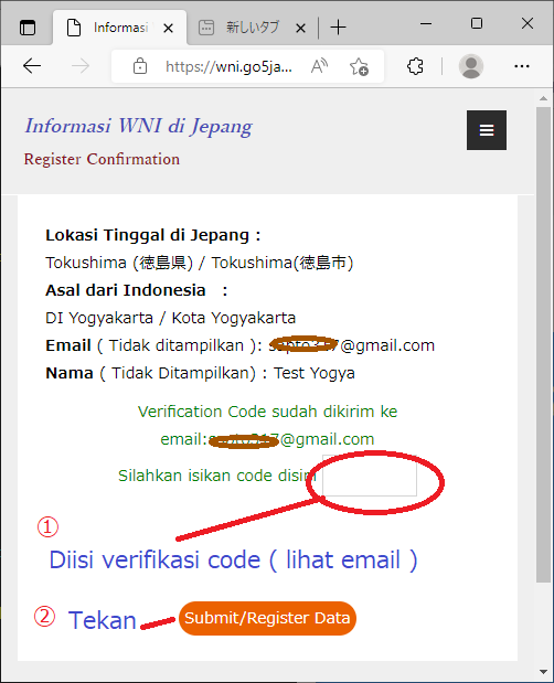 Proses konfirmasi ini perlu untuk mengecheck data diisi